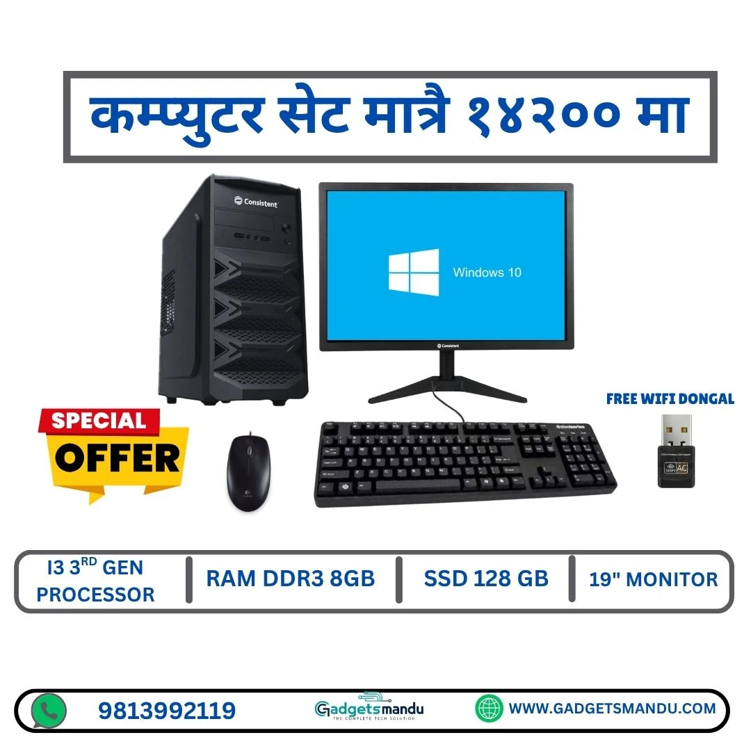 Computer Set with Core i3 3rd Gen, 8GB DDR3 RAM, 128 GB SSD, and 19-inch Monitor